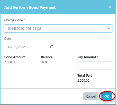 Note: System displays the Add Perform Bond Payment form (or Edit Perform Bond Payment form)